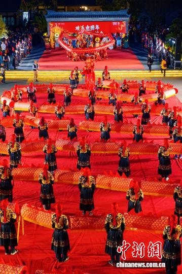 图为板凳龙穿梭于城厢古城。成都市青白江区融媒体中心 供图