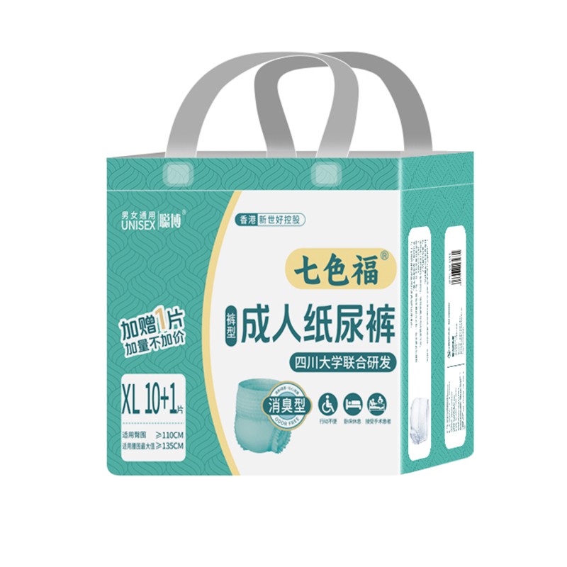 针对有自主活动能力的居家老人,同系列拉拉裤采用360°弹性腰围,穿脱方便还不勒腰,贴合人体工学的设计让老人活动更自在。而在养老机构集中照护场景下,七色福中端系列主打高性价比和高适配性,高效的吸水锁水结构能减少更换频率,可自由调节的无纺布魔术扣,让护理人员为卧床老人更换产品更便捷,大幅减轻护理负担,契合机构批量采购的预算要求。而针对术后康复的特殊护理需求,七色福高端系列做了全方位升级,无感腰围搭配高腰设计,久穿不勒还能全方位包裹,翻身也不用担心漏尿;立体透气面料拒绝闷热,消臭抑菌功能加上双层立体防漏护围,为身体敏感的康复期老人提供精细化的护理防护。