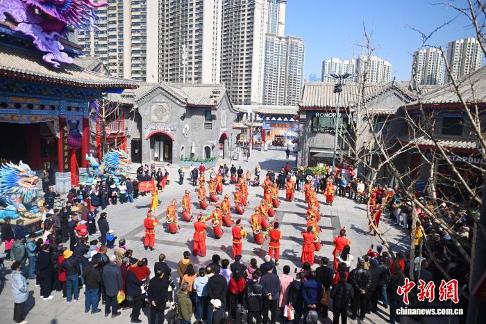3月20日,在位于甘肃省兰州市的兰州老街,祥龙献瑞民俗活动进行中。当日是中国农历马年二月初二,兰州老街举行了祥龙献瑞、彩龙翻飞、龙跃老街等二月二传统民俗活动,以祈愿鸿运抬头、风调雨顺。中新社记者 李亚龙 摄