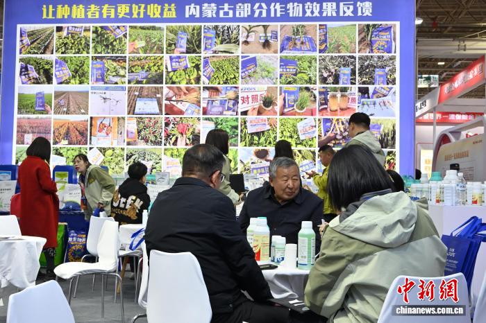 3月26日,内蒙古呼和浩特市,展商介绍玉米种子。中新社记者 刘文华摄