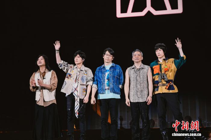 图为五月天在台上与歌迷互动。钟欣 摄