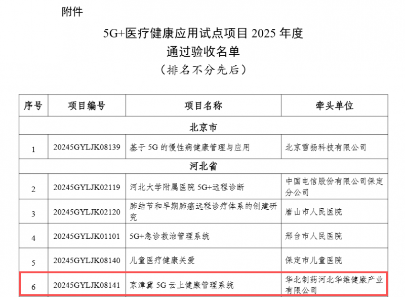 作为行业内药食同源技术创新标杆企业,华维公司以标准引领行业规范,牵头参与制定13项团体标准并正式发布;其主导的“5G云上健康管理项目”成功入选国家工信部5G+医疗健康应用试点示范项目,作为河北省唯一入选的医药企业,其成功入选标志着公司在5G智慧健康领域的探索实践获国家权威认可,为京津冀乃至全国智慧健康管理模式创新树立典范。