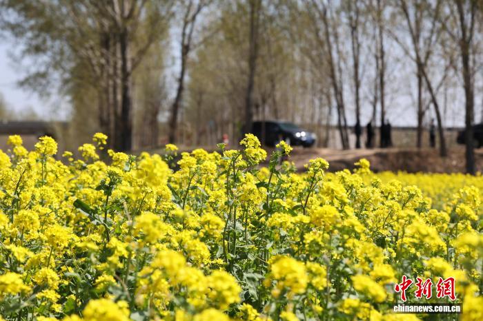 仲春时节,全国“十大最美农村路”——大运河堤顶路河北沧州段焕新姿。这条绿色“廊道”以盎然春意串联起生态美景、文化传承与民生幸福,成为市民游客踏青、健身、游览的好去处。图为4月7日,大运河堤顶路沧州南皮段油菜花田。(无人机照片) 呼阳 摄