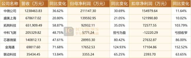 拓荆科技营收65.19亿元,同比增长58.87%,归母净利润9.29亿元,同比增长35.05%。产品竞争力持续提升,应用于先进存储、先进逻辑领域的PECVD、ALD、SACVD、HDPCVD等先进工艺设备进入规模化量产,并实现收入转化;先进键合设备在客户拓展方面取得了关键突破,销售收入大幅增长。