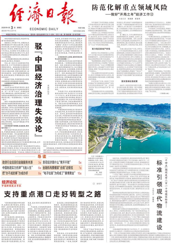 经济日报头版头条再发文:驳“中国经济治理失效论” 展现治理韧性与成效