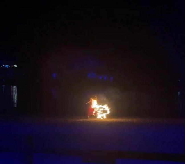 女子表演时裙子被火圈点燃 惊险瞬间获救无恙