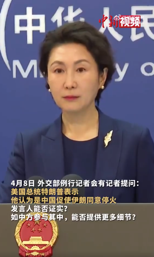 中方回应促使伊朗同意停火 特朗普认为是中国促使伊朗同意停火